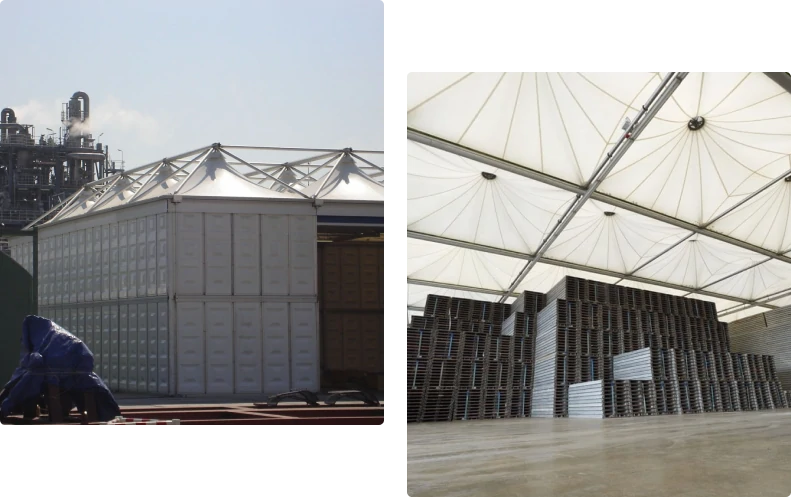 With the fire-retardant PVC/PVDF coating treatment, its fabric cover is less prone to burning and abrasion, suitable for equipment storage, industry, workshop, and logistic management.