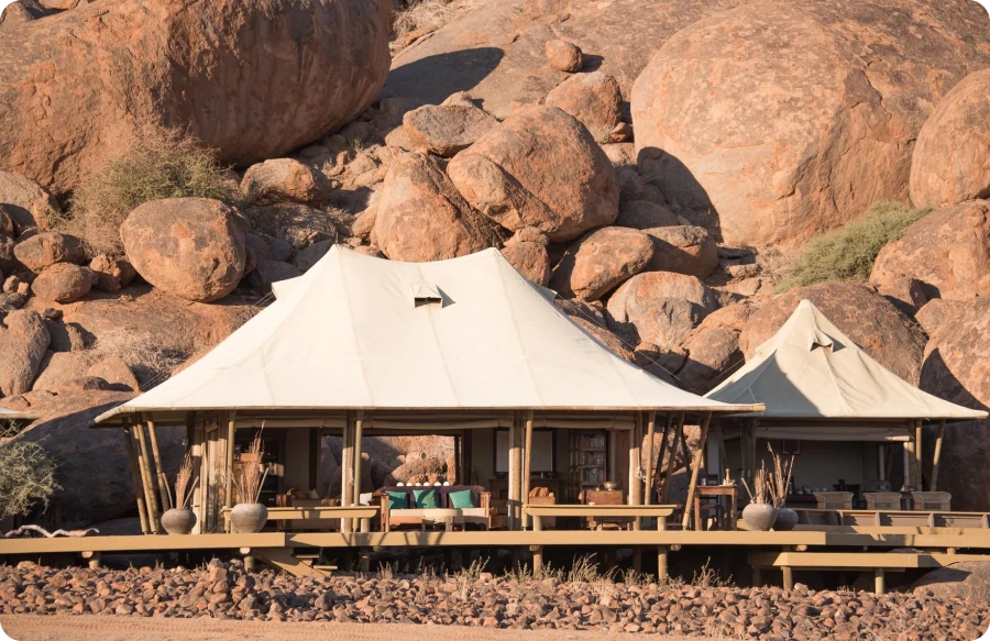 - This safari tent features an outdoor leisure area to provide extra space for getting close to nature.