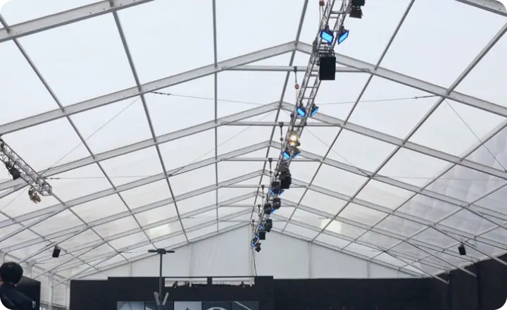 Made with a sturdy aluminum alloy frame and galvanized steel fasteners, our A-frame clear span tent provides strong protection in any situation. It can withstand up to 120km/h wind load and prevent inclement weather.