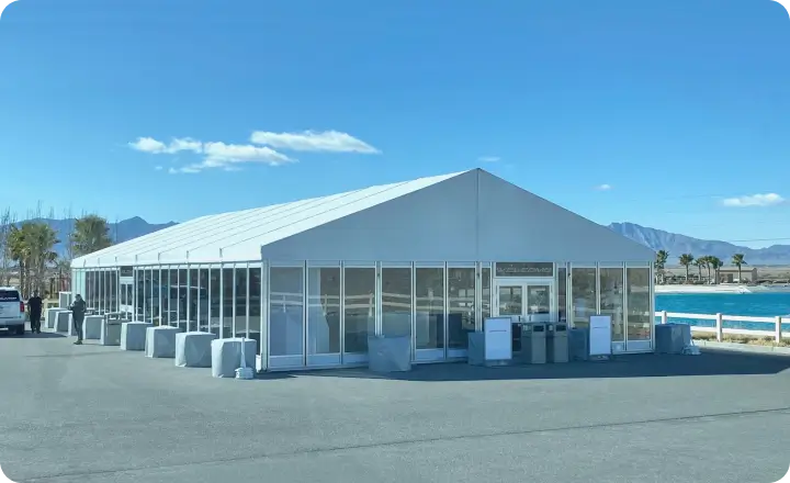 Our A-frame clear span tent is available in widths up to 70 meters and any length. This allows you to customize a tent large enough to accommodate guests or goods.