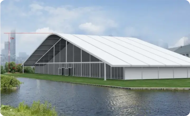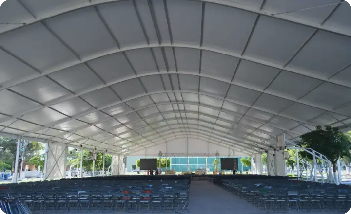 Our arcum clear span tent remains stable and balanced without the need for internal poles. This allows you to fully utilize all the space in the tent to plan the layout.