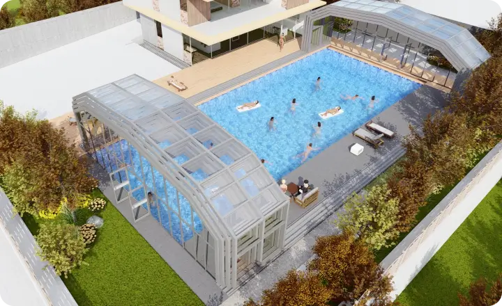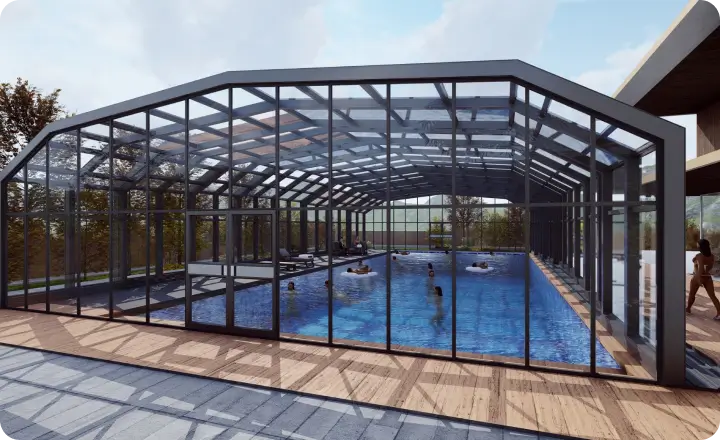 We offer a wide range of customization options for our retractable pool enclosures. You can choose the height, width, and length to fit your space, pick colors and styles to match your aesthetic and select materials and features that meet your specific needs. This ensures you get a retractable pool enclosure perfectly tailored to you.