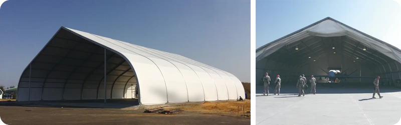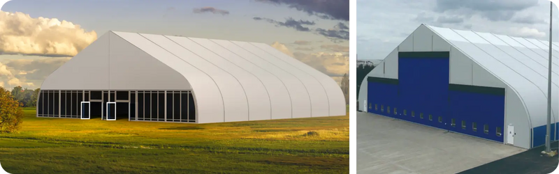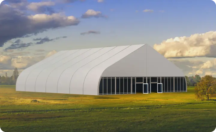 The PVC fabric of the TFS clear span tent is 100% waterproof and mildew-resistant. Goods can easily get wet or moldy in rainy areas. But this tent always provides a dry and clean environment for your goods.