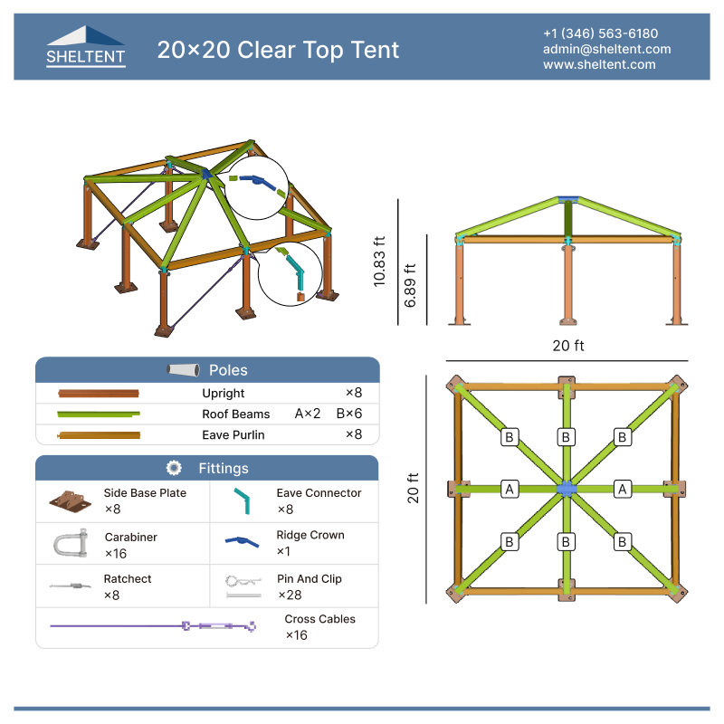 | Tent Top Weight | 28000g | Total Square Feet | 400 |