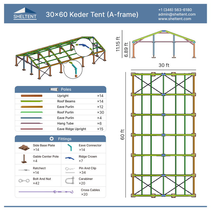 | Tent Size | 30x60 ft | UV Coated | Yes (IV Level) |